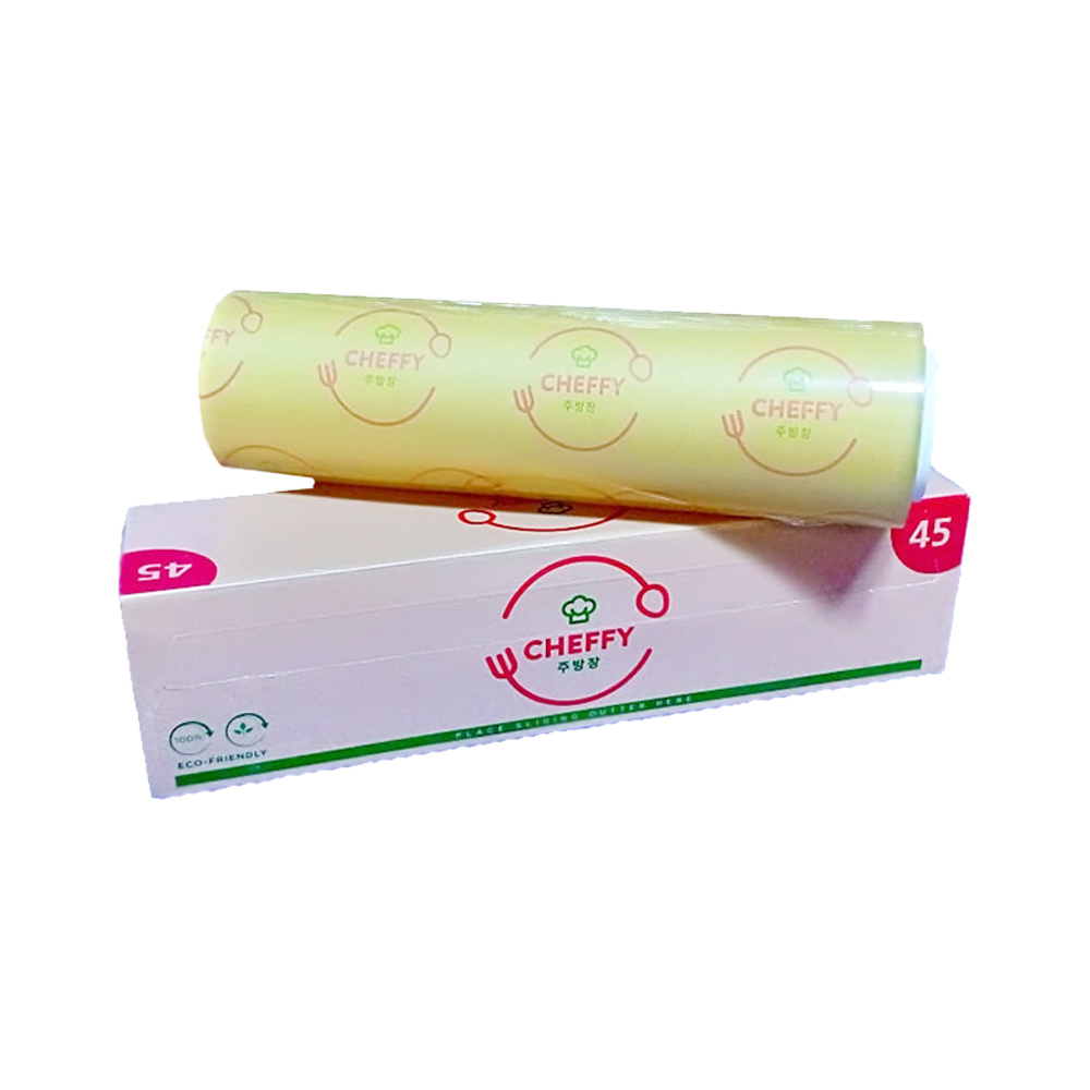 | Ukuran | Wrapping Film Cheffy 20×500, Wrapping Film Cheffy 25×500, Wrapping Film Cheffy 30×500, Wrapping Film Cheffy 35×500, Wrapping Film Cheffy 40×500, Wrapping Film Cheffy 45×500, pping Film Cheffy 45×500 + Cutter Box |